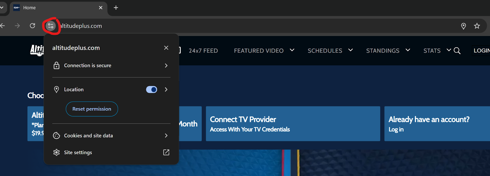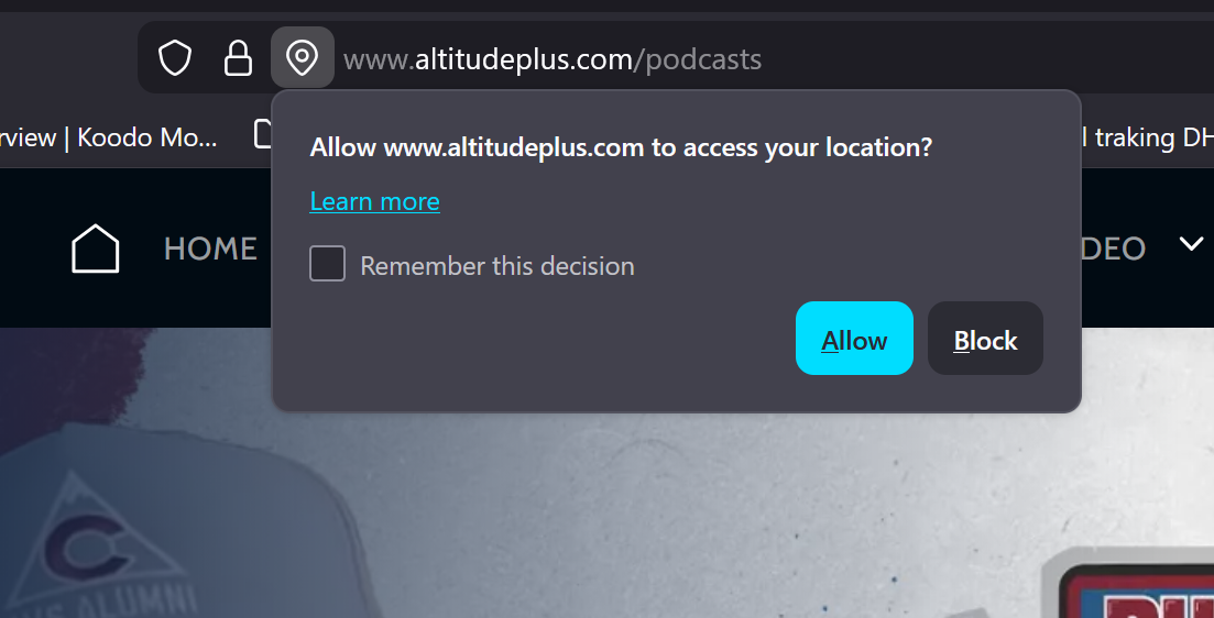 When you visit the site, a pop-up will ask: "Altitude+ wants to know your location." You must click Allow.